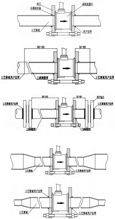 4、將流量計取下,把法蘭按要求焊接好,并清理管道內所有凸出部分。