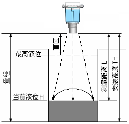 超聲波液位計(jì)量程指儀表能夠測量的距離,安裝高度TH應(yīng)小于量程。