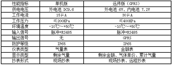 三、IC卡燃氣控制器技術參數