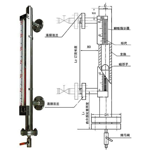 磁翻板液位計結構圖、安裝圖、安裝步驟、使用