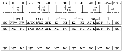 7、其它輸入信號(如開關量輸入)或分度號(如PT1000)需在訂貨時注明;