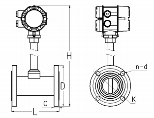 法蘭連接型渦街流量計的基本結構主要是由表體、探頭、旋渦發生體、表桿和轉換器等組成。