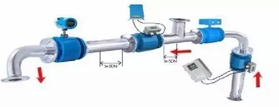 流量計和閥門往往串聯安裝在同一條管道上,它們之間的距離很短,但設計人員經常要處理的一個問題是流量計是在控制閥的前面還是后面。在我們的情況下,電磁流量計安裝在閥門后面。