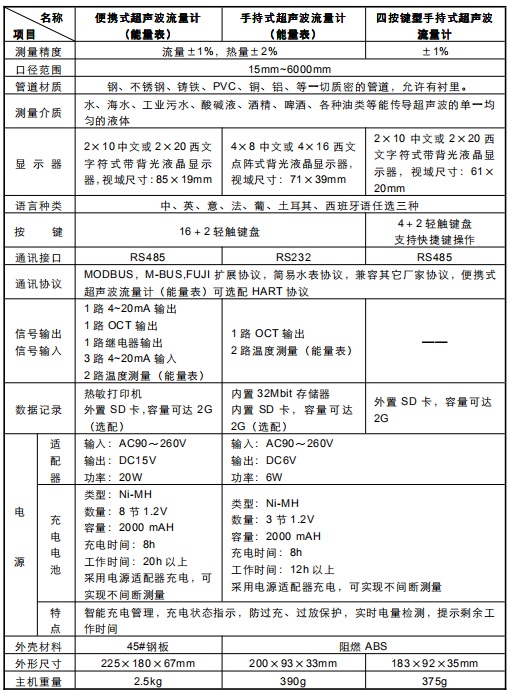 三、便攜式超聲波流量計主要特性