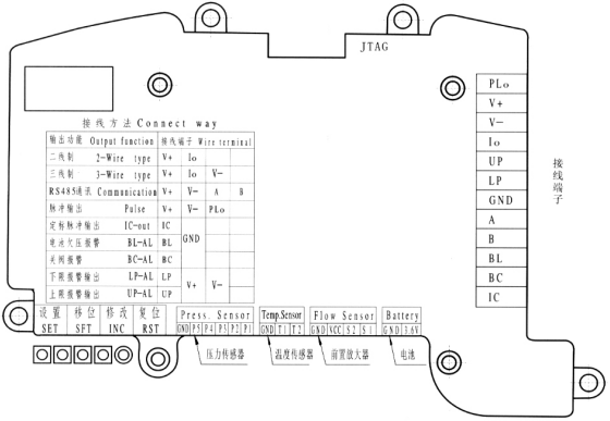 GND — 補償儀內部電路地(電池負極); IC — 定標脈沖輸出(至IC卡控制器)