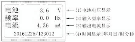 輔助菜單闡明?在常顯屏下按"RIGHT"鍵能夠進入用戶輔助菜單,"RIGHT"鍵中止翻頁,完成快捷查看如下參數∶