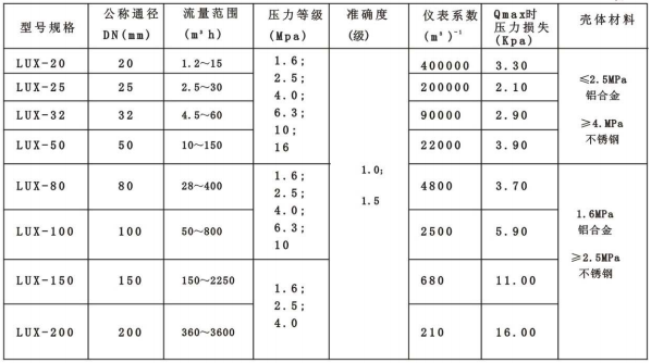 (1)當已知被測流量為工況體積流量時,可直接按表中的流量范圍選取適配的公稱通徑;