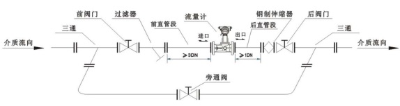 5、當被測氣體中含有雜質時,應在流量計前端安裝裝過濾器或過濾網,但仍應保證儀表前的直管段要求。