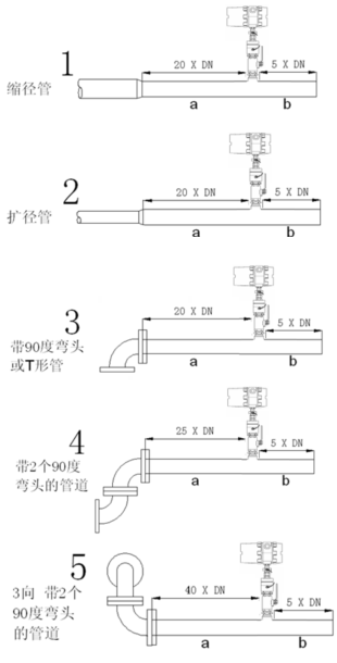 后直管段:*小為5×DN