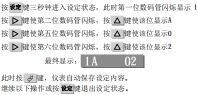 小數點位置的提示符是:d,在設定顯現范圍前,先設定小數點位置。小數點位置設定代碼范圍是0~3,其含義是0對應個位〔第六位數碼管〕,1對應十位〔第五位數碼管〕,2對應百位〔第四位數碼管〕, 3對應千位〔第三位數碼管〕。從例二中我們看到顯現范圍是-100.0~100.0℃,小數點位置在十位上,也就是說在第五位數碼管上顯現,其對應代碼是1。因而按以下操作停止小數點位置設定。
