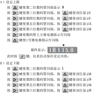 例四:**通道的量程范圍是4~20mA,顯現范圍是-100.0~100.0℃; 記載范圍是0.0~150.0℃。報警上限為115.0℃,1號繼電器輸出。下限為90.0℃,3號繼電器輸出。偏向上限為4.0℃,2號繼電器輸出。偏向下限為30.0℃,4號繼電器輸出。