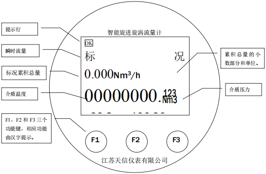 2、瞬時流量可切換顯示標況體積流量(Nm3/h)和工況體積流量(m3/h),*多可保留 3 位小數,顯示*大值為 9999999;