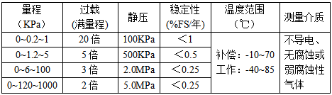 測(cè)量范圍:0~0.2~1000KPa 量程連續(xù)可選